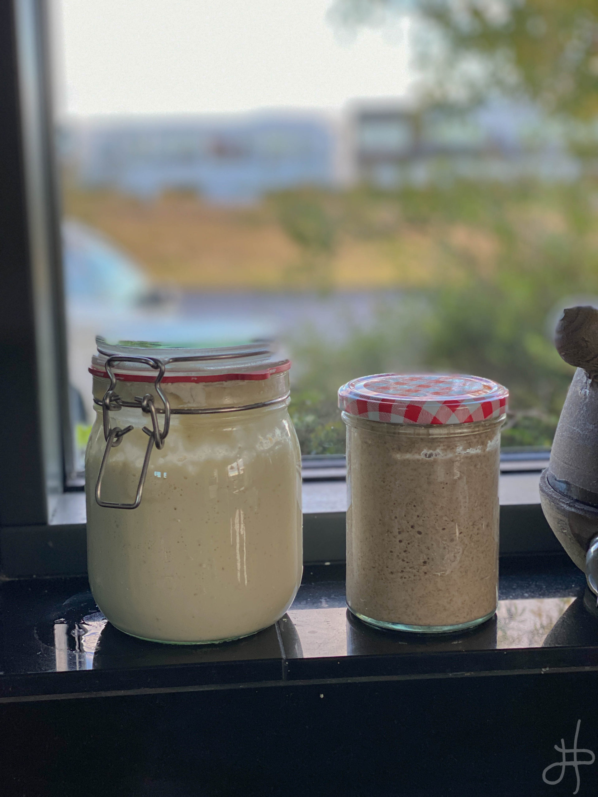 Reglusemi: Best að mata grunninn reglulega – ef ég vil bara halda honum við læt ég aðeins af hveiti og vatni út í en ef ég vil auka magn hans og virkni set ég alveg upp í 1 dl af hveiti og vatni (allt eftir því hvað ég er að nota hann mikið). Hann þolir að vera án mötunar í nokkurn tíma (nokkrar vikur – alveg upp í mánuð)