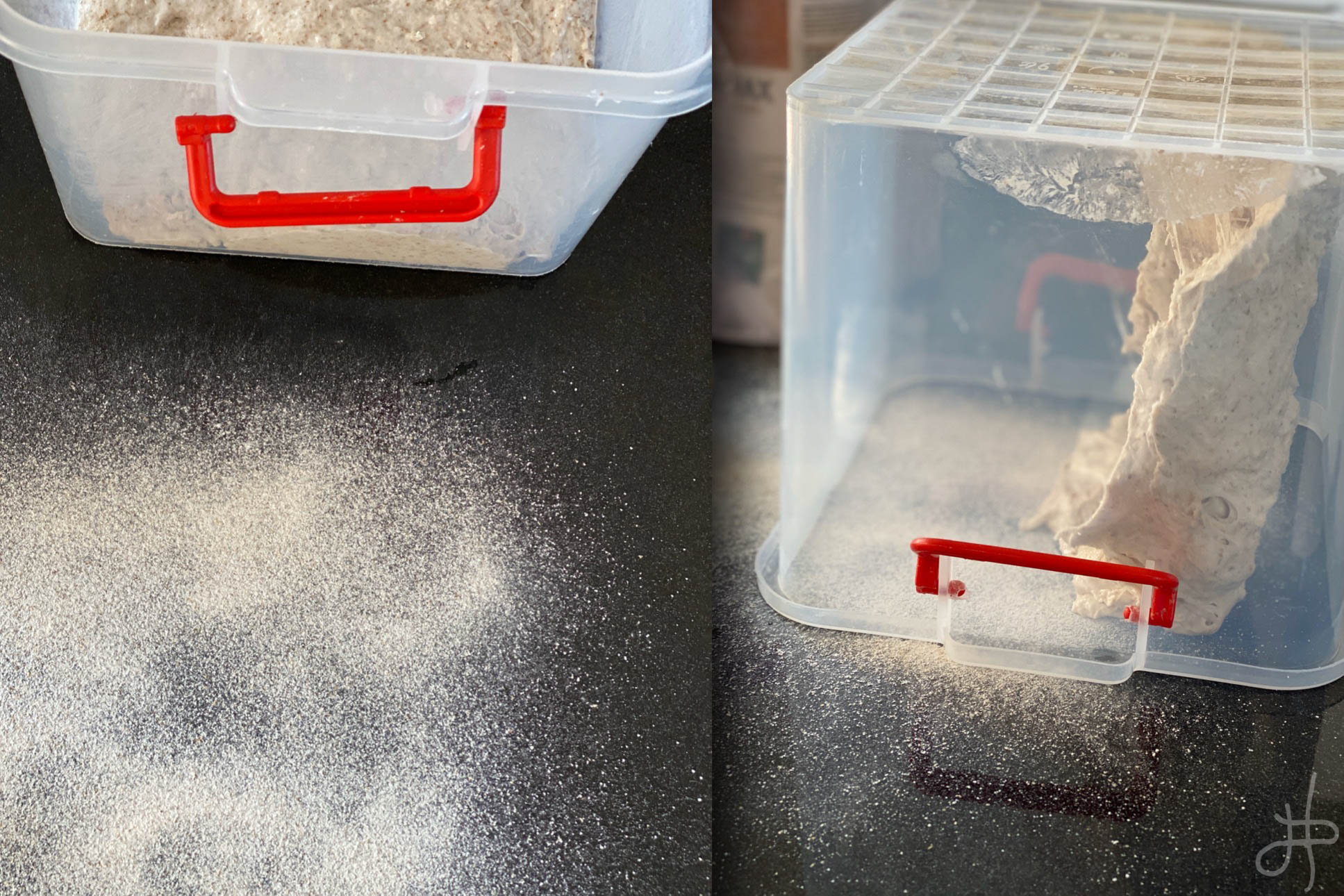 Deigið sett í box með loki og látið hefast í 3 – 4 klukkustundir við stofuhita